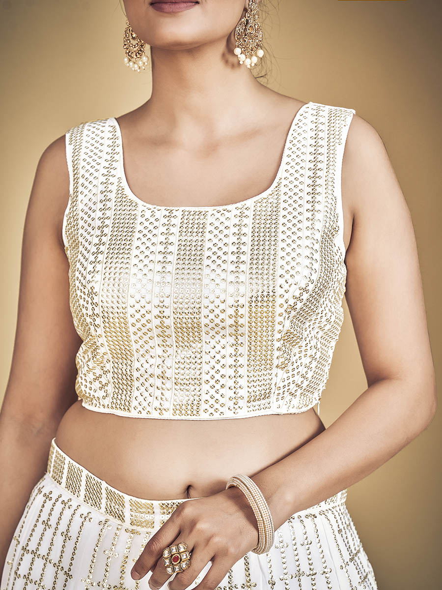 Myra White Georgette Real Georgette Lehenga Choli - Distacart