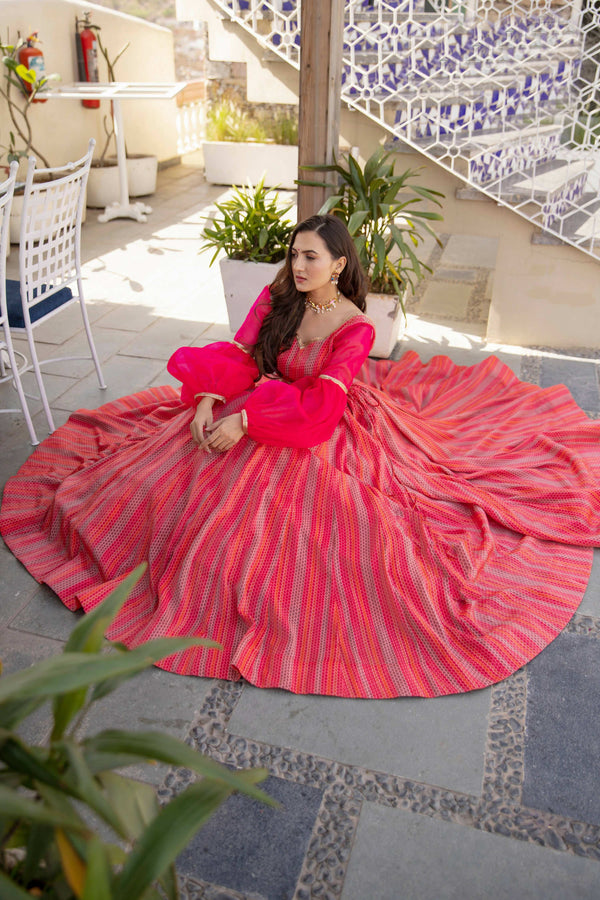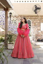 Wedding Designer Red Pink Chanderi Designer Lehenga - Anbazaar