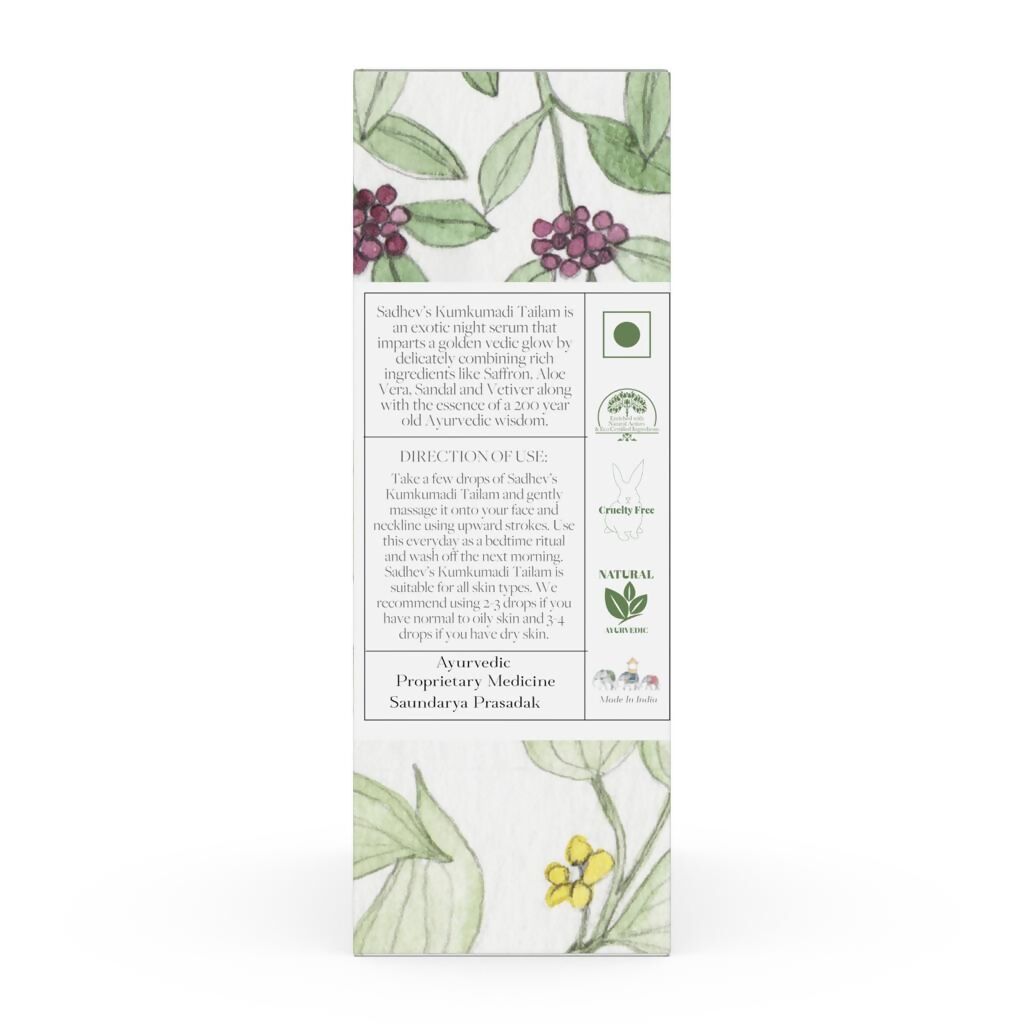 Sadhev Kumkumadi TailamAbout the Product:Saffron was a treasured beauty secret used by Rani Samyukta, Prithviraj Chauhan’s queen who was known for ...