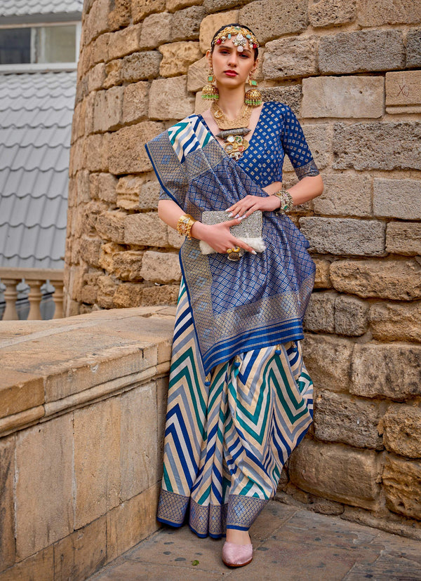 A Blue Woven Silk Saree is a masterpiece of craftsmanship and tradition. Meticulously handwoven by skilled artisans, this saree boasts intricate geometric patterns and vibrant colors that are characteristic of Patola textiles. The silk used in its creation lends it a luxurious drape and a regal appearance. Wearing a Woven Patola Silk Saree is not just adorning oneself with clothing but also with a piece of art that tells the story of India's rich textile heritage.Legal Disclaimer :Product color may slightly vary due to photographic lighting sources or your monitor settings.