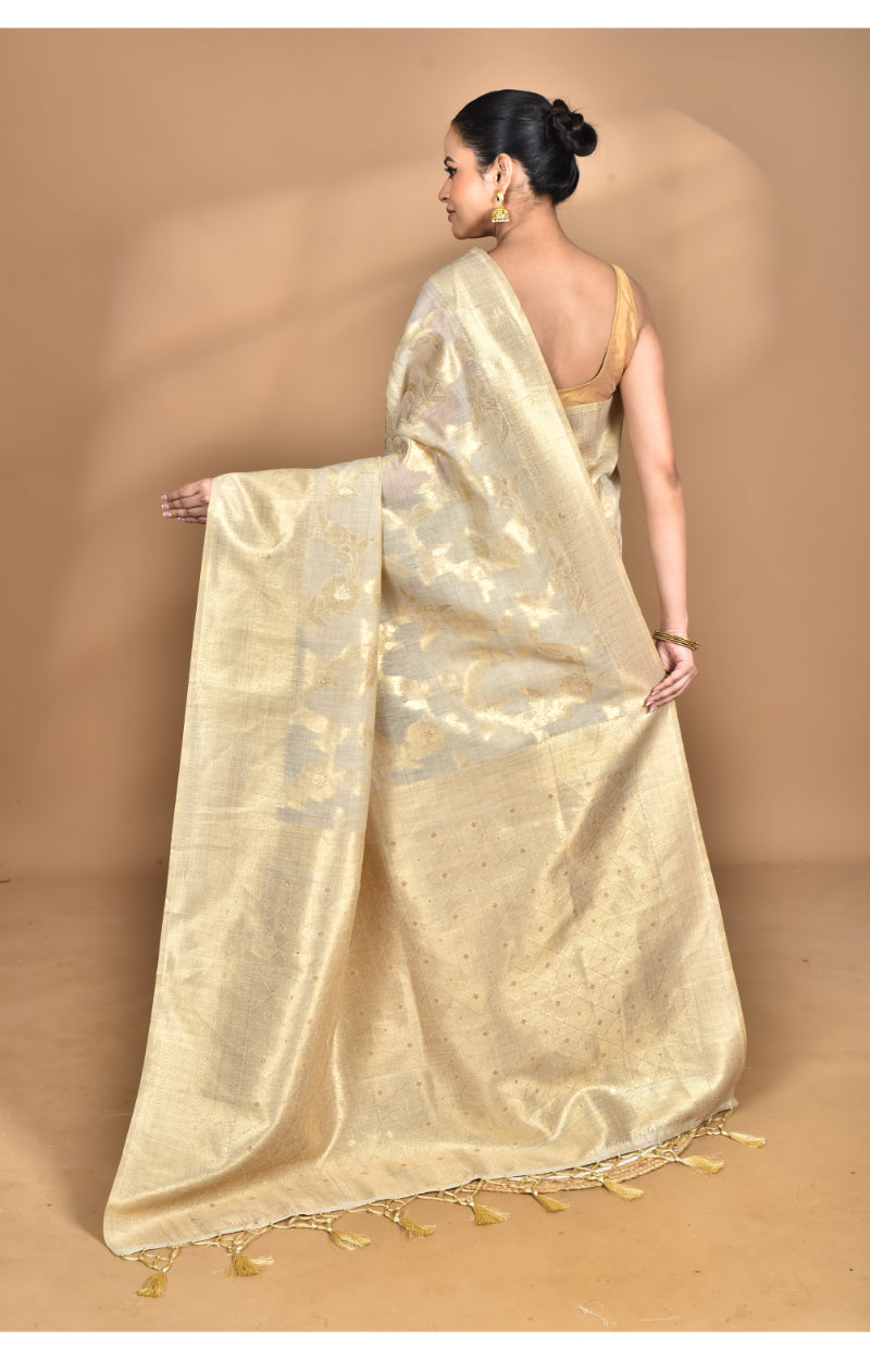 Morchari Banarasi Silk Chanderi Saree-Cream