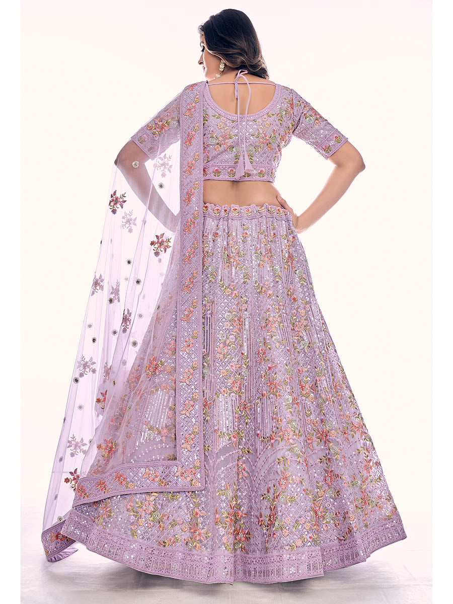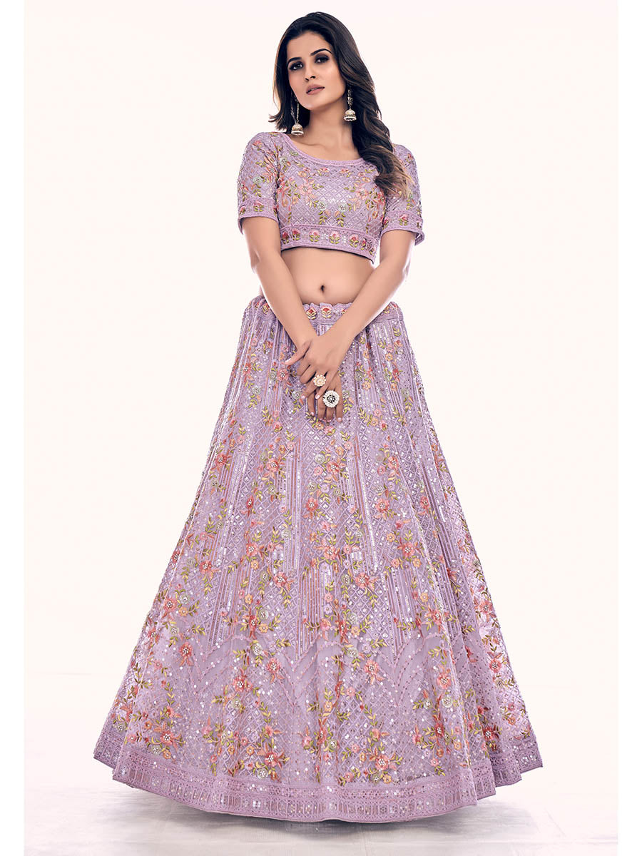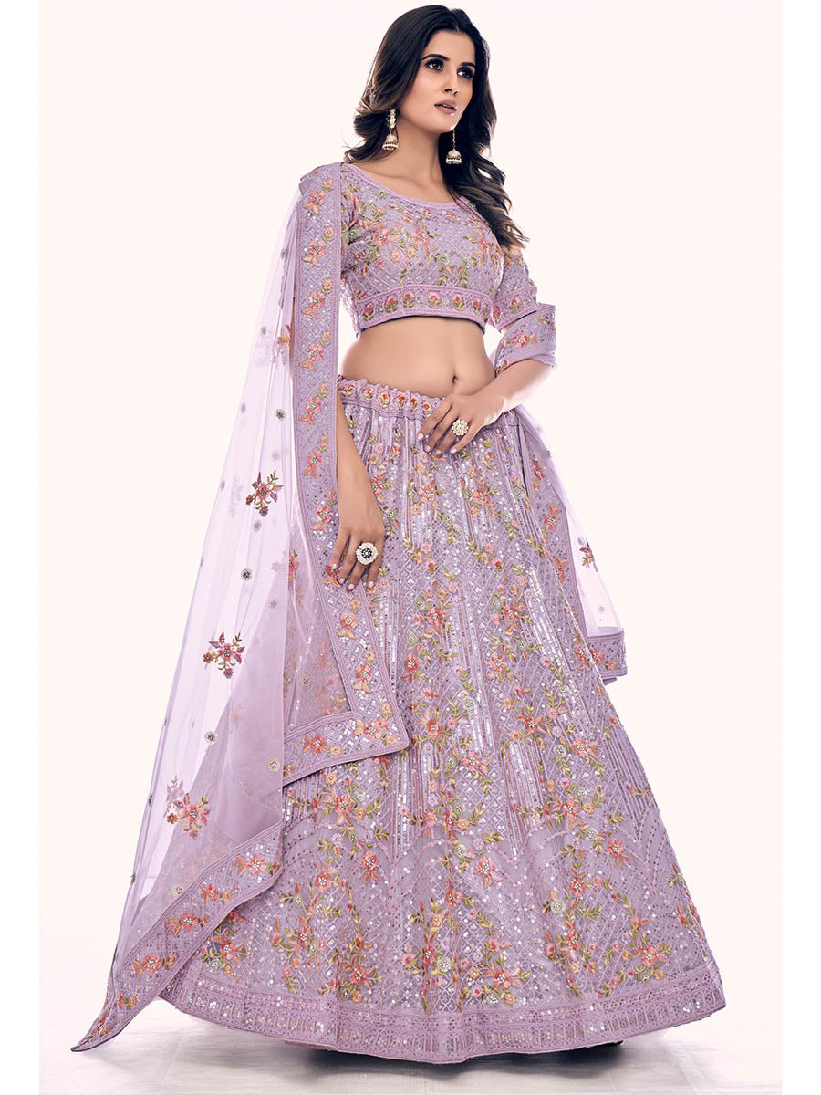 Myra Lilac Soft Net Embroidered Designer Lehenga Choli - Distacart