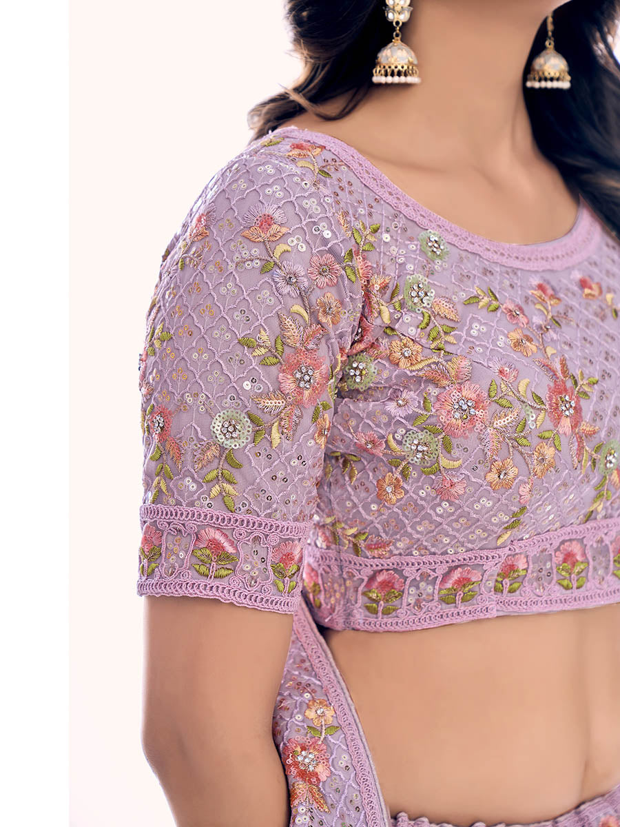 Myra Lilac Soft Net Embroidered Designer Lehenga Choli