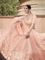 Peach Soft Net Heavy Embroidered Lehenga features a soft net blouse , soft net dupatta and soft net Lehenga. Embroidery is completed with Thread & Sequins. This style is made in India and checked by hand to ensure high quality.