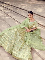 Pista Green Soft Net Heavy Embroidered Lehenga features a soft net blouse , soft net dupatta and soft net Lehenga. Embroidery is completed with Sequins. This style is made in India and checked by hand to ensure high quality.