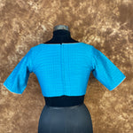 Streaks of Blue Light Blue Coloured Chanderi Silk Ready to Wear Blouse - kapda Tailor - XS