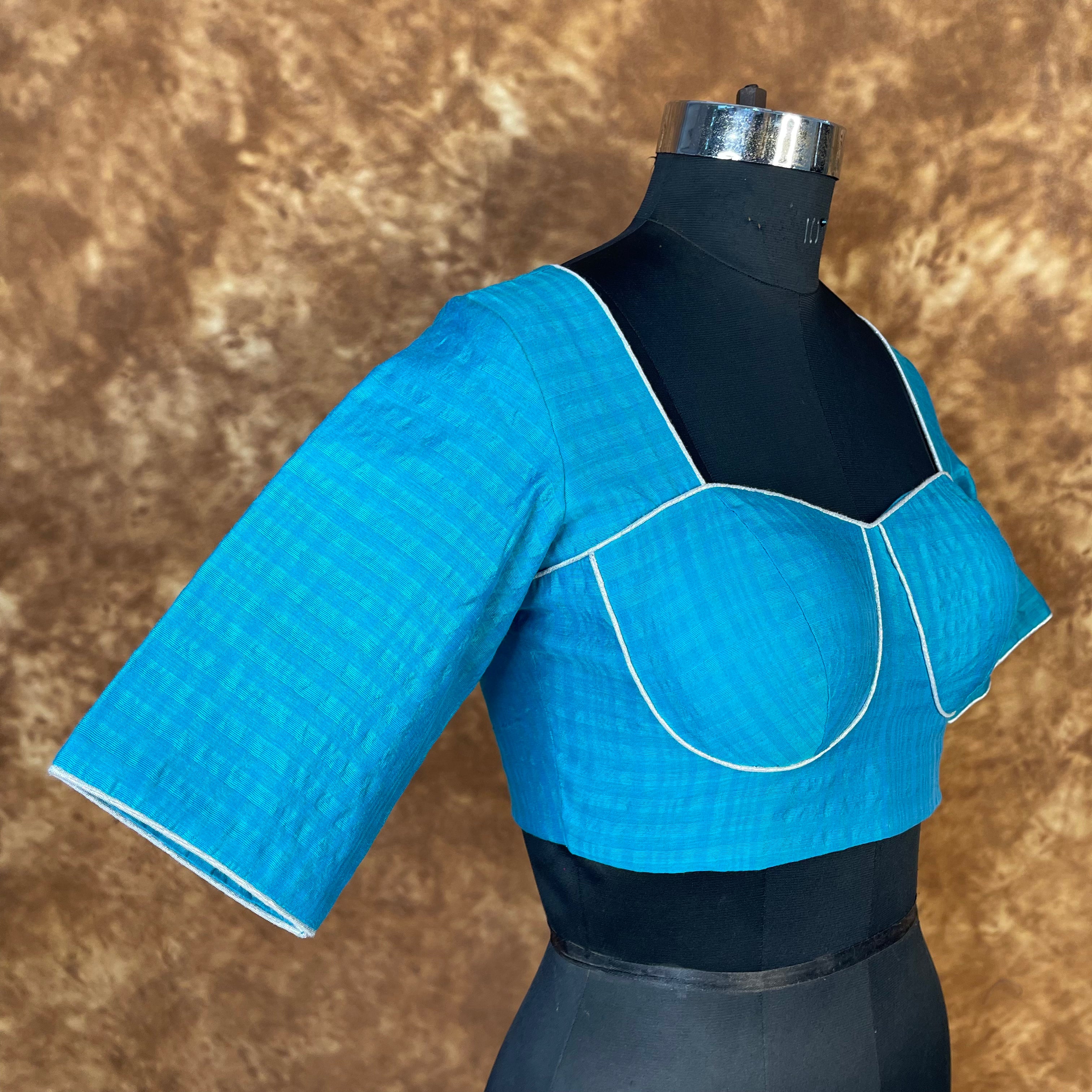 Streaks of Blue Light Blue Coloured Chanderi Silk Ready to Wear Blouse - kapda Tailor Elevate your elegance quotient with our Chanderi Silk Piping ...