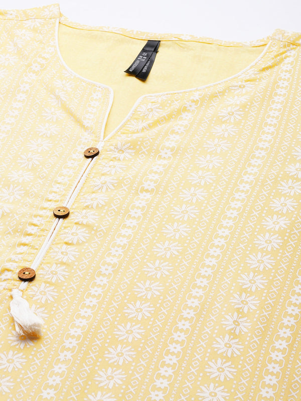 HERE&NOW Women Yellow & Off-White Printed Regular Kurta with Palazzos - XS