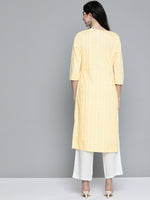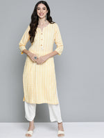 HERE&NOW Women Yellow & Off-White Printed Regular Kurta with Palazzos