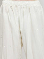 PAVONINE Off-White Color Half Schiffli Chikankari Cotton Fabric Palazzo For Women - Free Size