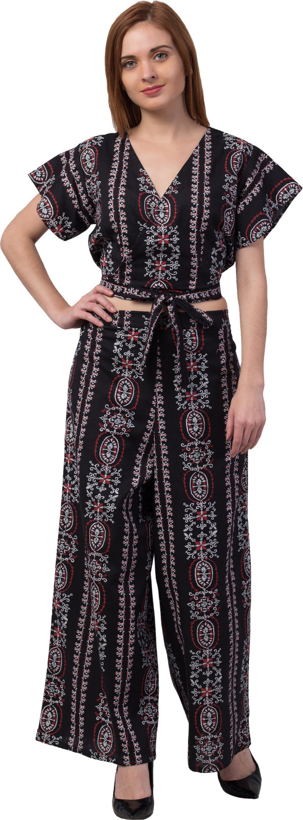 PAVONINE Black Color Printed Crop Top And Flared Palazzo Set For Girls & Women - XS