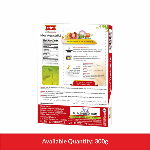 Priya Ready To Eat Mixed Vegetable Dal - 300 gm