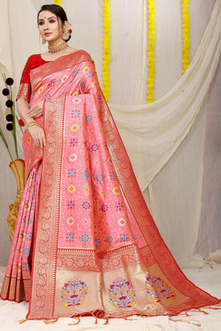 Jyoti Fashion Women's Baby Pink Patola Silk Zari Woven Saree with Blouse