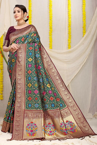 Jyoti Fashion Women's Bottle Green Patola Silk Zari Woven Saree with Blouse