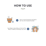• Take 2-3 caps of solution and add it into your 20 ltr bucket. Mix well. Your water is now soft. You can use the water to bathe or shampoo your hair