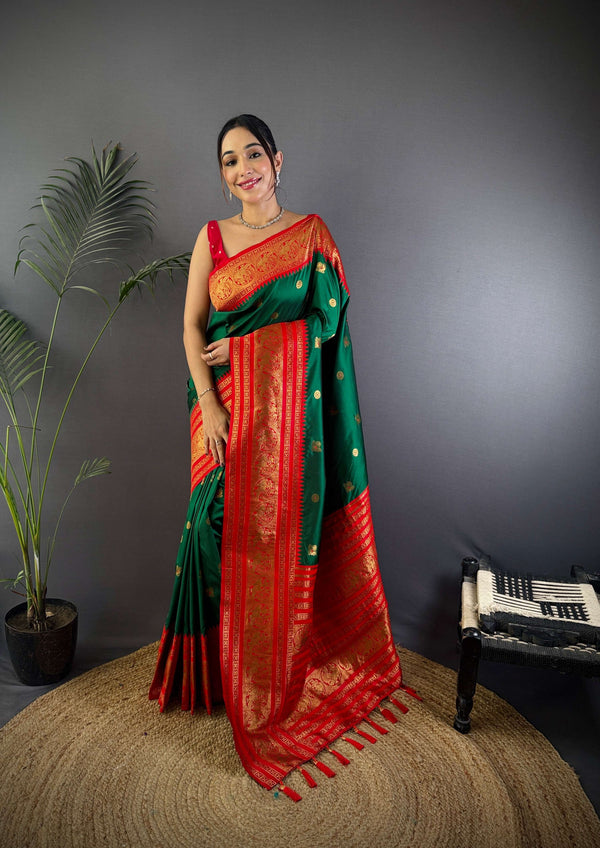 Sonakshi Women's Green Soft Silk Zari Woven Traditional Saree with Blouse - Free Size