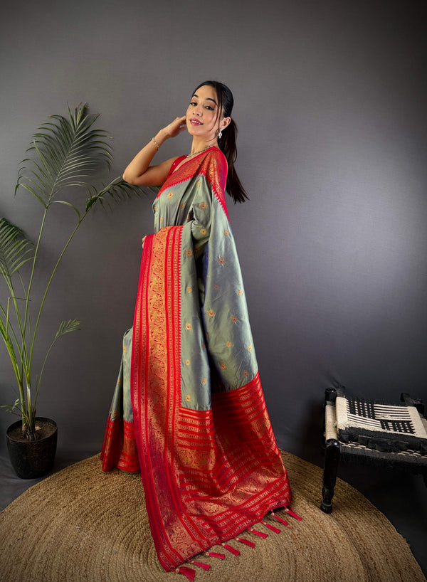 Sonakshi Women's Silver Soft Silk Zari Woven Traditional Saree with BlouseSAREE• Fabric: Soft Silk• Size: 5.5 Meter • Work: Zari Woven• Color: Mo...