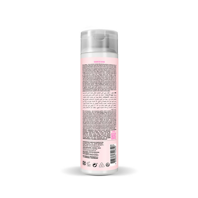 Quartzo Shine Conditioner for daily use is enriched with protective polymer to make hair shiny, soft, and healthy looking. It provides gentle nourishment to hair and combats dryness while maintaining lightness and movement. The shea butter present in its formulation has properties that protect the hair from drying out, making it soft to the touch.