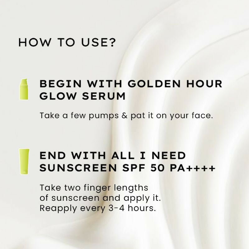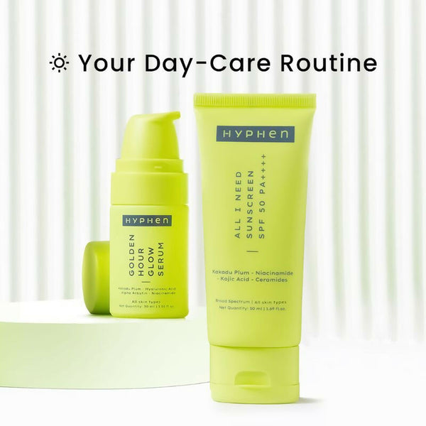 Hyphen By Kriti Sanon Golden Hour Glow Serum & Sunscreen Combo This Combo Contains: 1. Hyphen All I Need Sunscreen SPF 50 PA ++++ - 50 ml 2. H...
