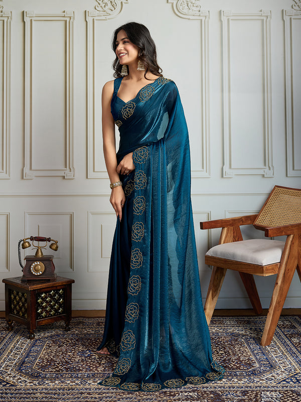 Jyoti Fashion Women's Morpich Fandy Satin Handwork Designer Saree with Blouse - Free Size