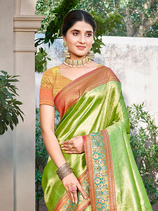 Sangam Prints Green Kanjivaram Silk Woven Work Traditional Saree