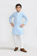Joban Fashion Cotton Sky blue Kurta With Straight Fit Pant - 1Y-2Y