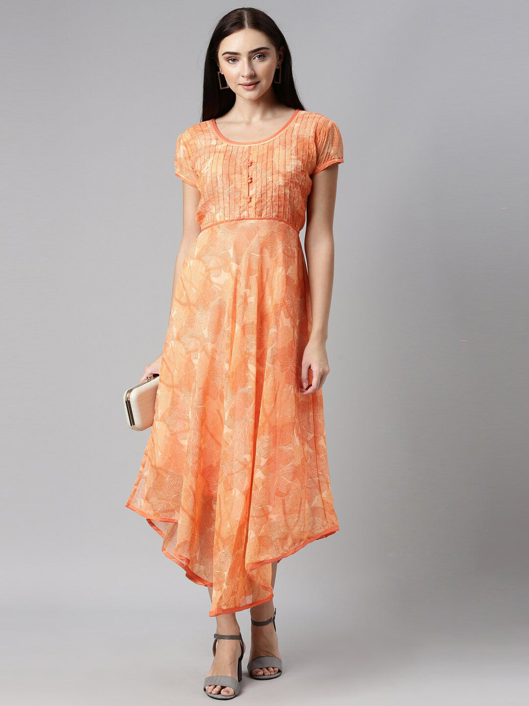 Souchii Chiffon Midi Dress Product Details  abstract print fit & flare dress Round neck Short, regular sleeves Midi length in asymmetric he...