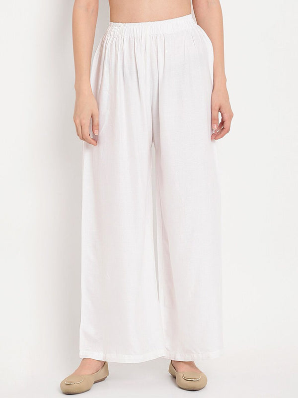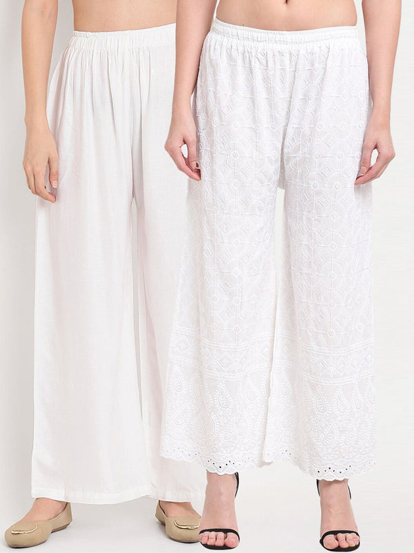 TAG 7 Pack Of 2 Women White Embroidered Palazzos