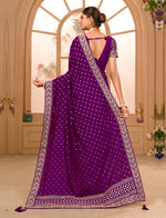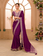 Elegant Chinnon Silk Saree with Foil Print, Heavy Sequin-Codding Pallu & Zari Lace Border, paired with Embroidered Dhupiyan Blouse.
