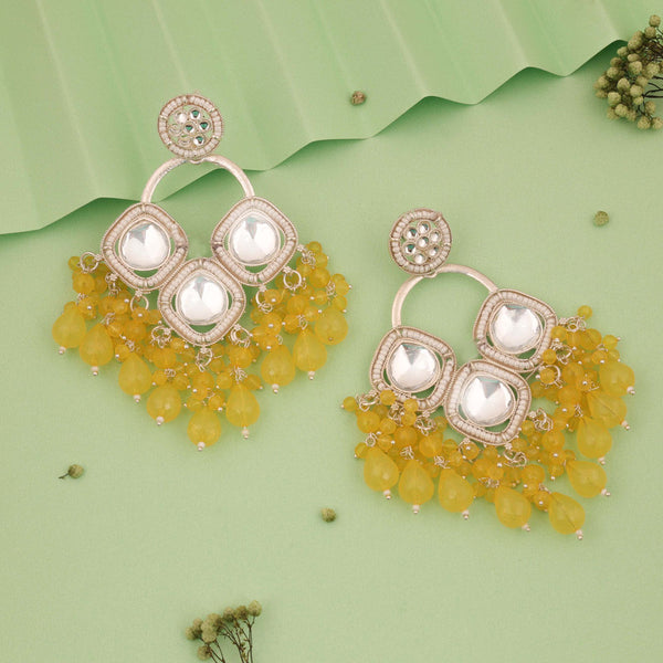 Tehzeeb Creations Gold Polish Yellow Colour Earrings