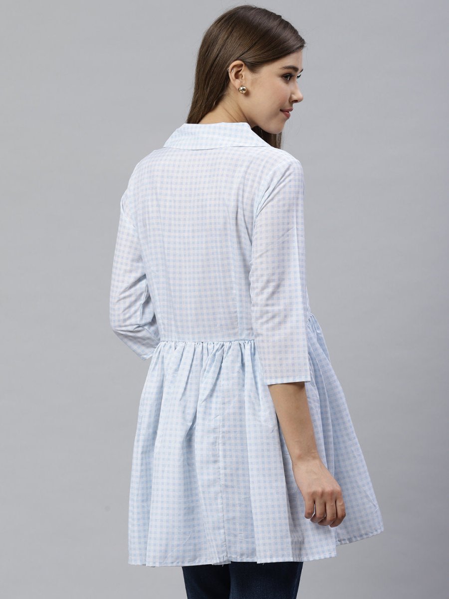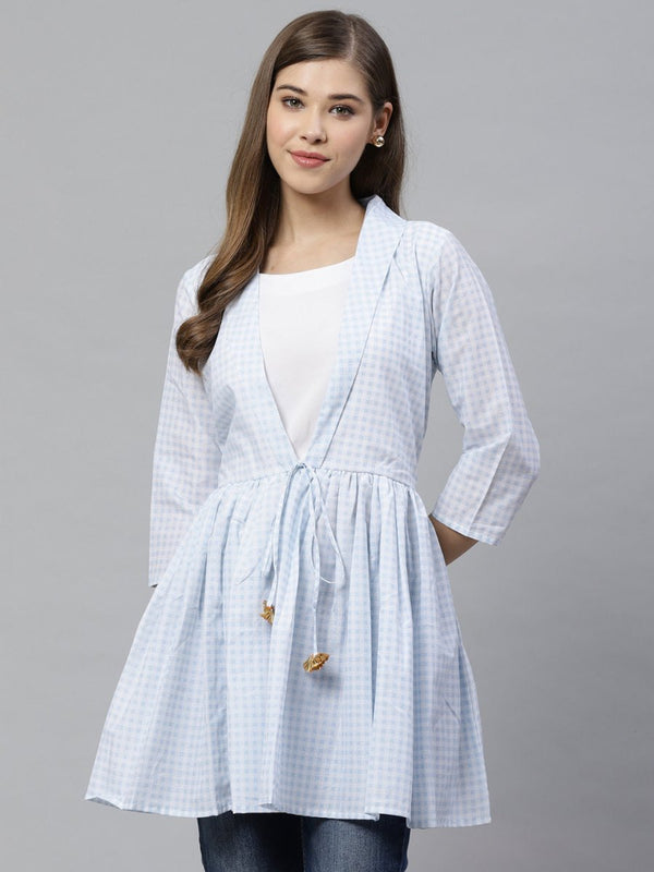 Ahalyaa Blue & White Checked Waist Tie-Up Tunic
