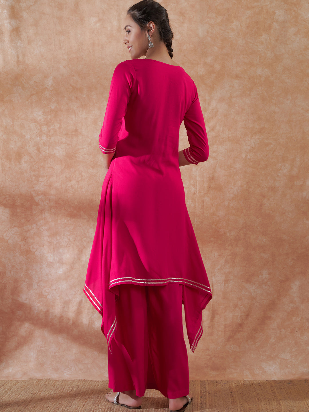 The Set is crafted from best of Indian fabrics. Style it with Oxidised jewelery and juttis and you are good to go for any outing Hand Wash Only Seperately.