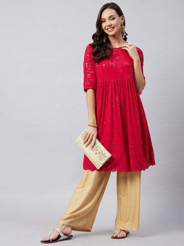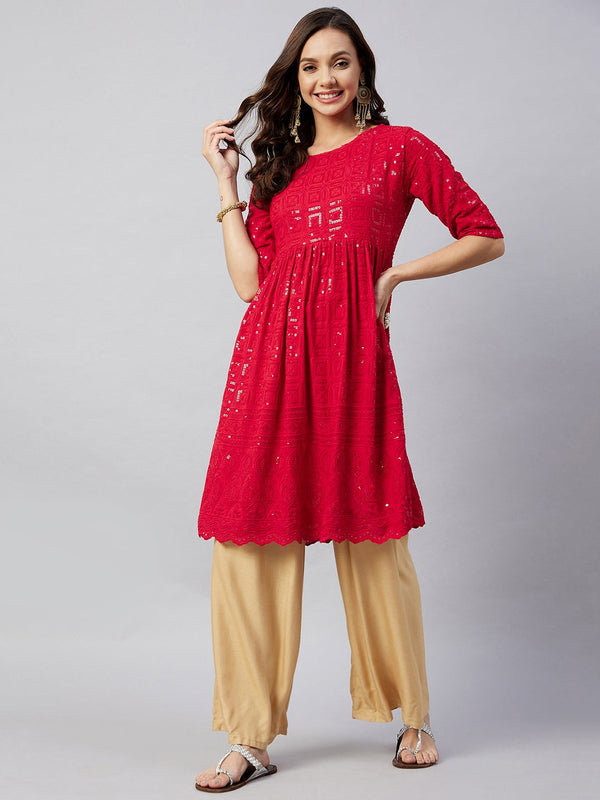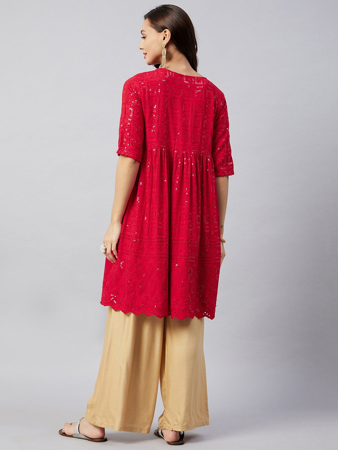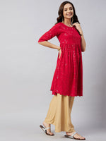 A bright color A-line kurti to beat the heat this summer. Comfortable and simple. This kurti is designed in such a way that you can easily carry it and perfect for any ethnic day at office.