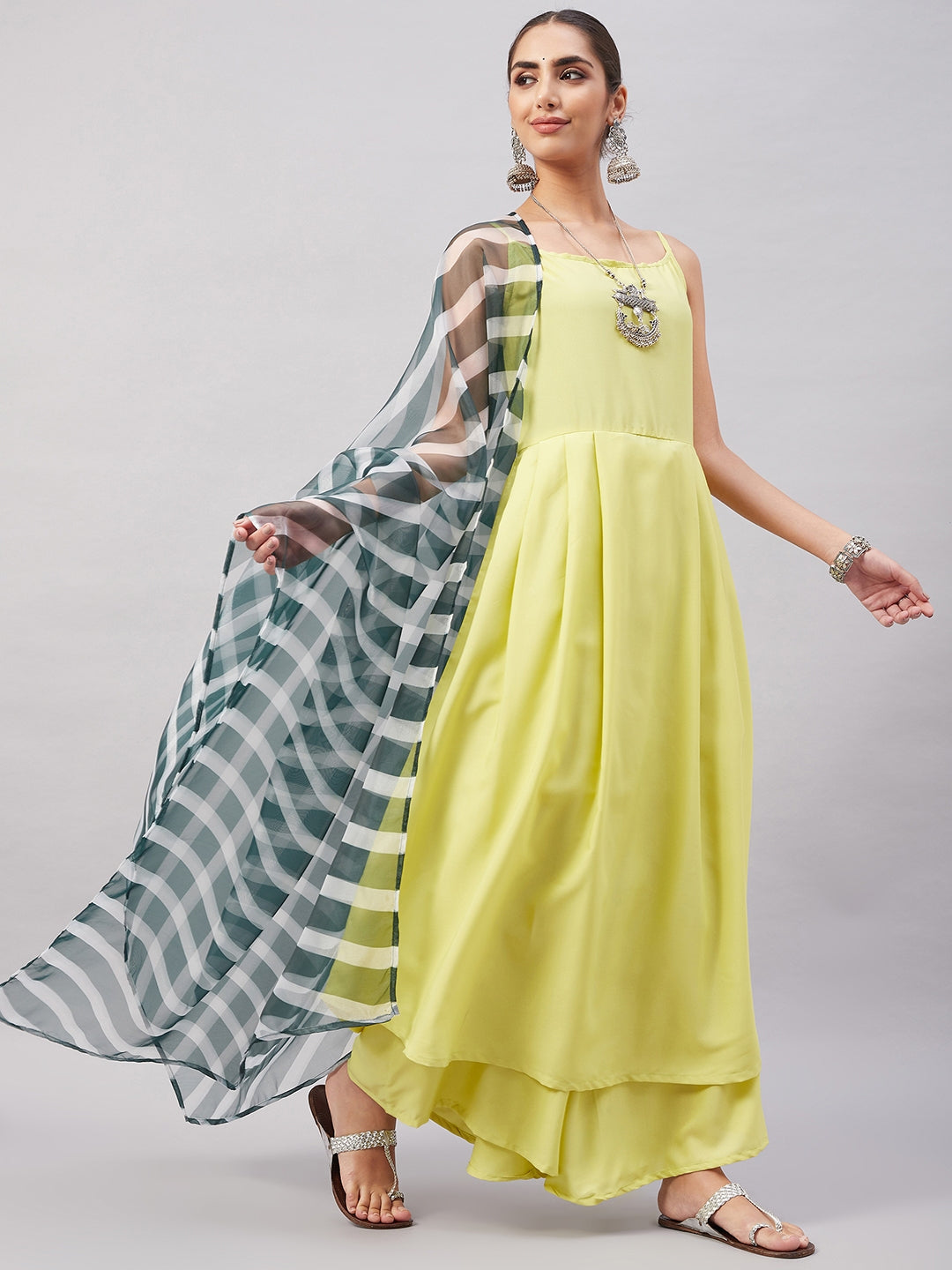 The Set is crafted from best of Indian fabrics. Style it with Oxidised jewelery and juttis and you are good to go for any outing Hand Wash Only Separately.