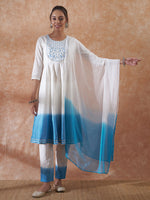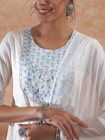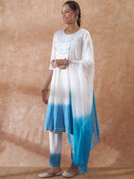 Inweave Women's White Lurex Blue Dye Patch Gota Anarkali Kurta Set W Dupatta