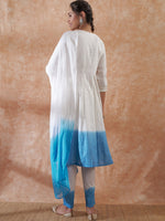 InWeave Women's White Lurex Blue Dye Patch Gota Anarkali Kurta Set W Dupatta - S