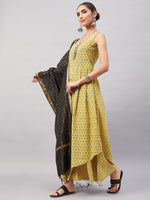 The Set is crafted from best of Indian fabrics. Style it with Oxidised jewelery and juttis and you are good to go for any outing Hand Wash Only Separately.