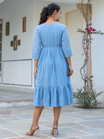 Janasya Light Cotton Schiffli Fit & Flare Dress