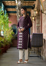 Juniper Women's Mauve Ethnic Motif Printed Polycotton Straight Round Neck Women Kurta