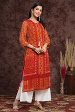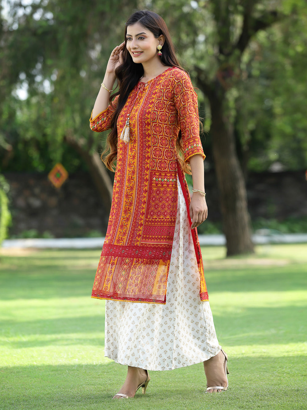Juniper Women's Mustard Chiffon Printed Straight KurtaJuniper Women's Mustard Chiffon Printed Straight Kurta Perfect For Fusion Clothing With A Tra...