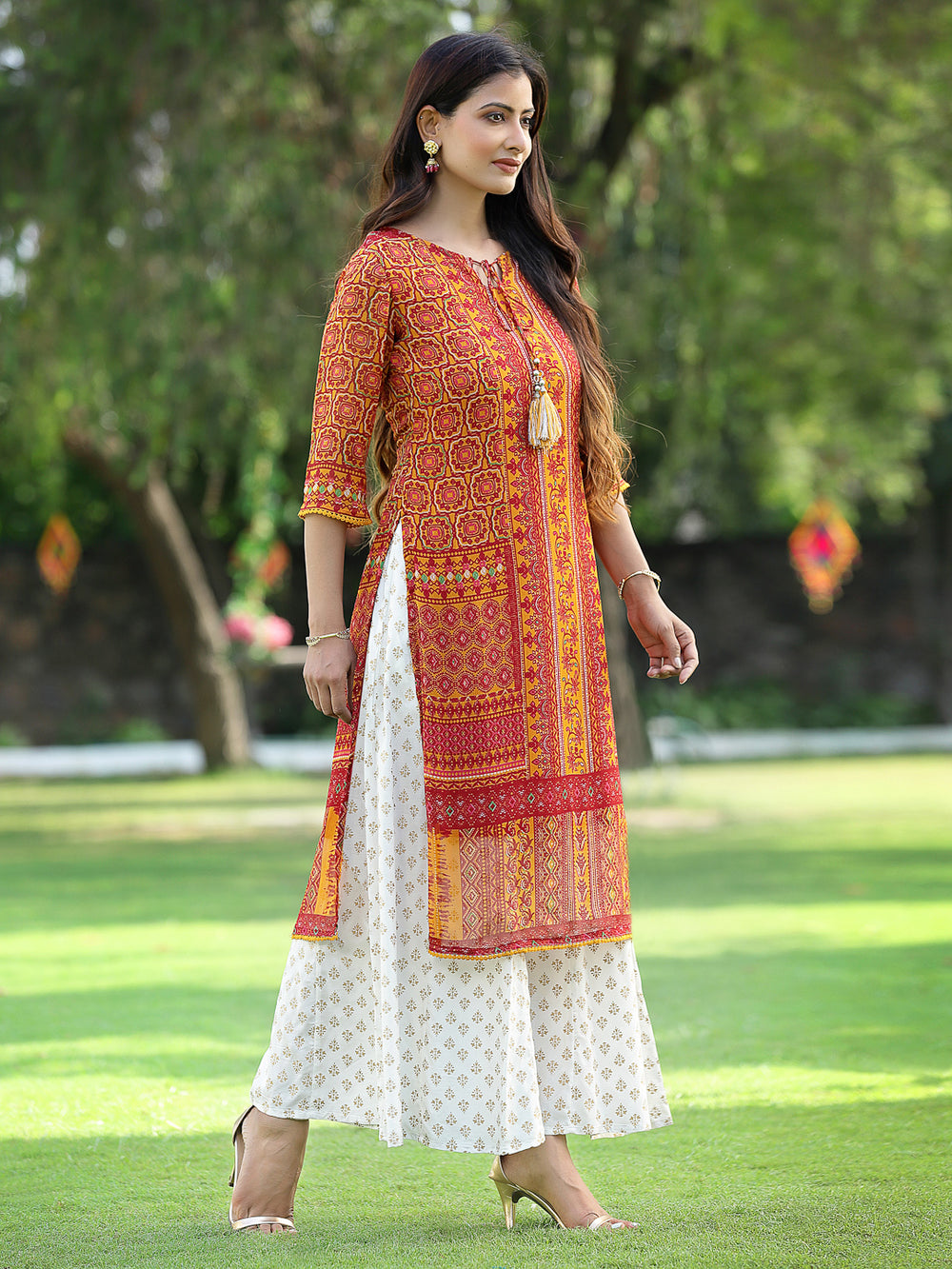 Yufta Cotton Mustard Anarkali Kurta Dupatta Set - Distacart Yufta Cotton Mustard Anarkali Kurta Dupatta Set