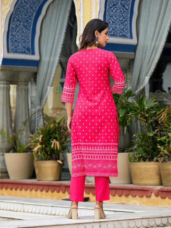 Yufta Pink Ethnic Motifs Pure Cotton Straight Kurta Pant Set - Distacart Yufta Pink Ethnic Motifs Pure Cotton Straight Kurta Pant Set