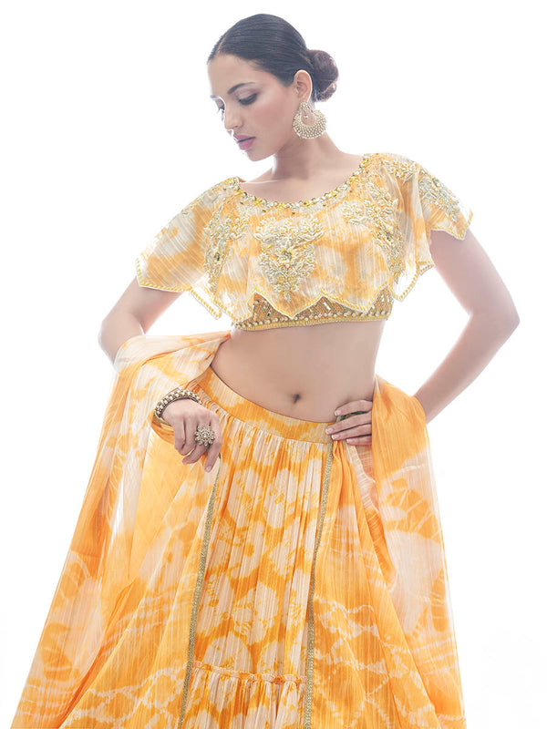 Myra Yellow Jaquard Embroidered Designer Lehenga - XXS