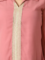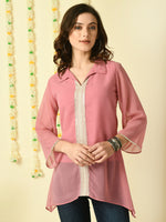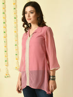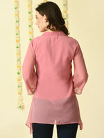 Myshka Women's Pink Embroidered Party Fusion Top Color: Pink Top Type: Tunic Bottom Type: NA Dupatta: NA Dupatta Fabric: NA Fabric: Georgett...
