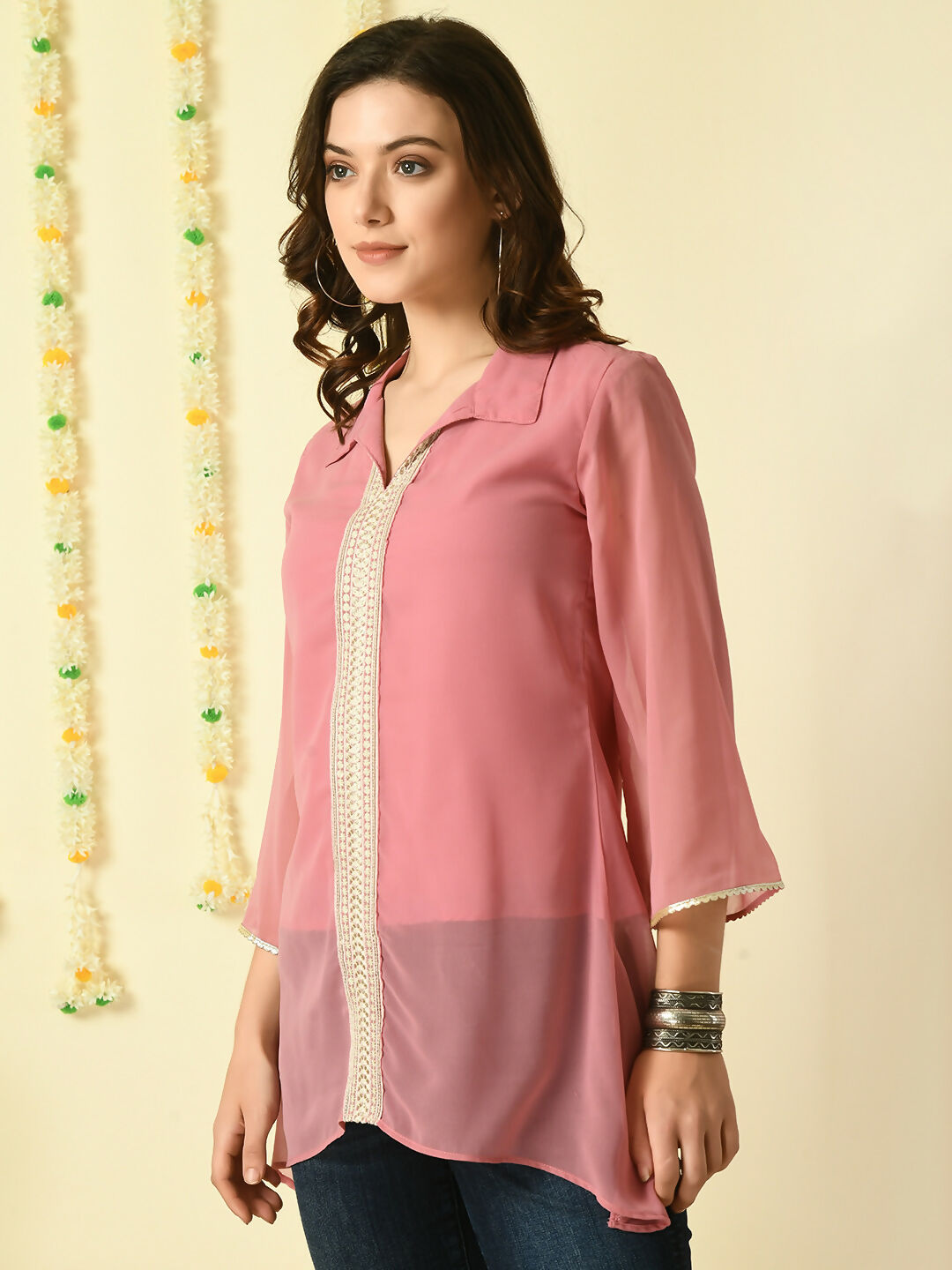 Myshka Women's Pink Embroidered Party Fusion Top - Distacart