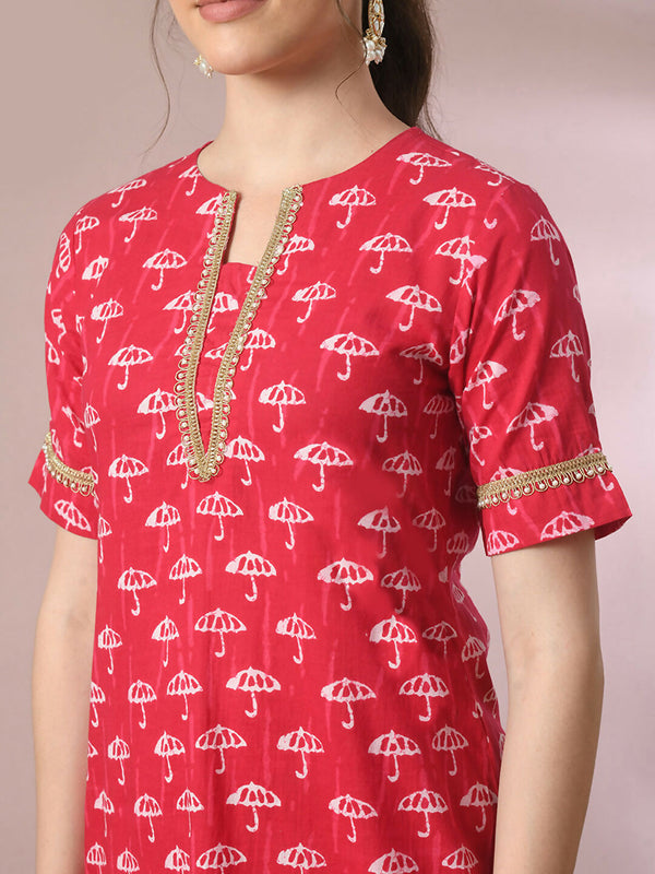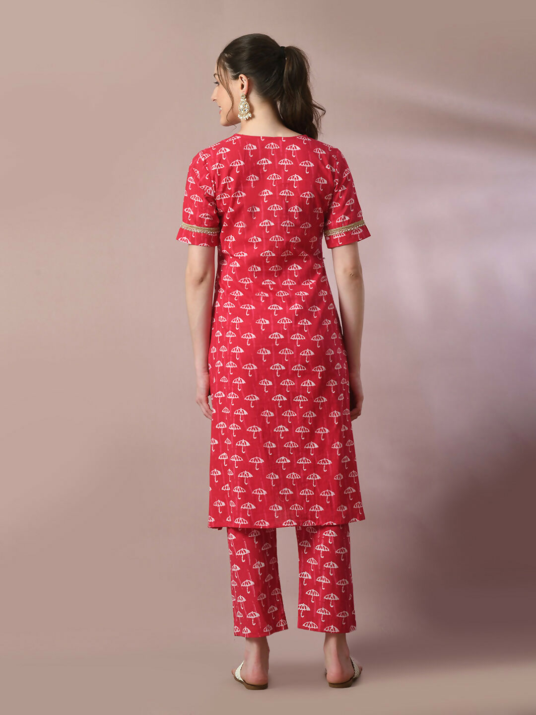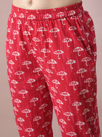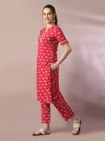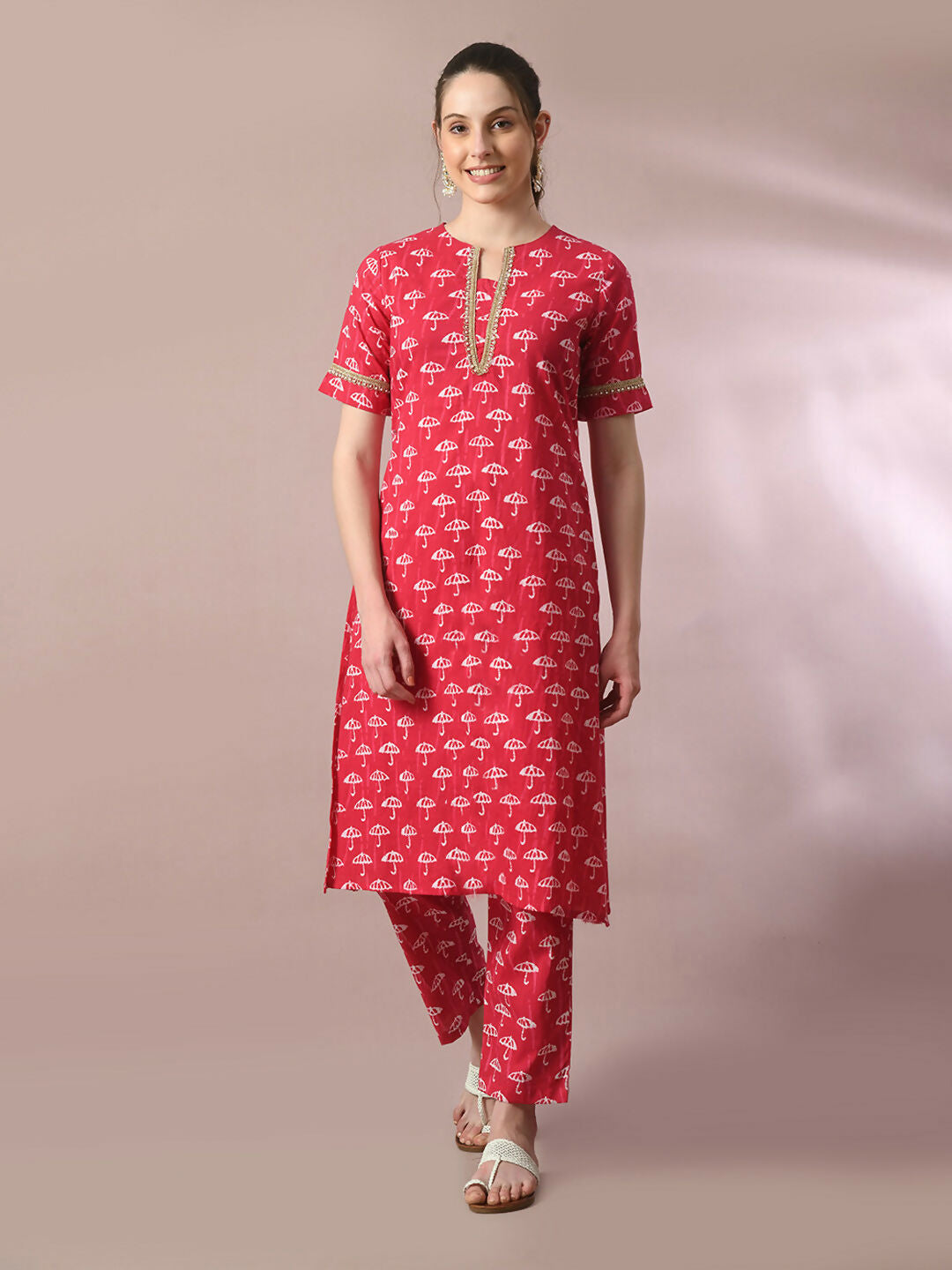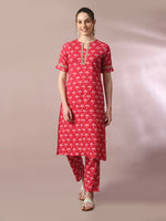 Myshka Women's Pink Printed Cotton Straight Party Kurta Set Color: Pink Top Type: Kurta Bottom Type: Trousers Dupatta: No Dupatta Fabric: NA...