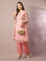 Myshka Women's Pink Solid Straight Party Kurta Set With Dupatta - S