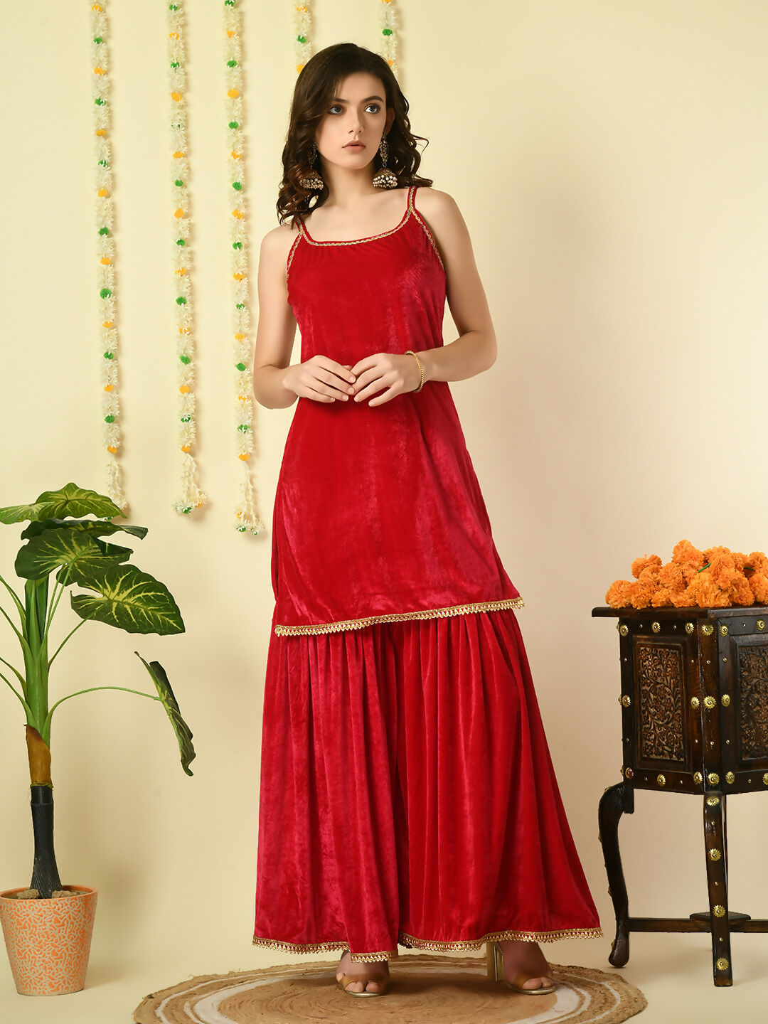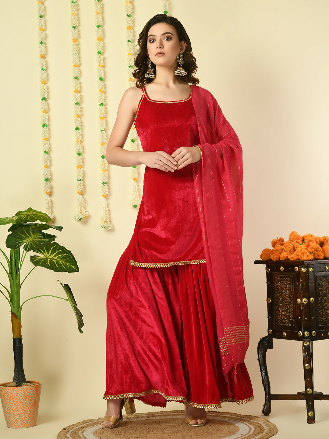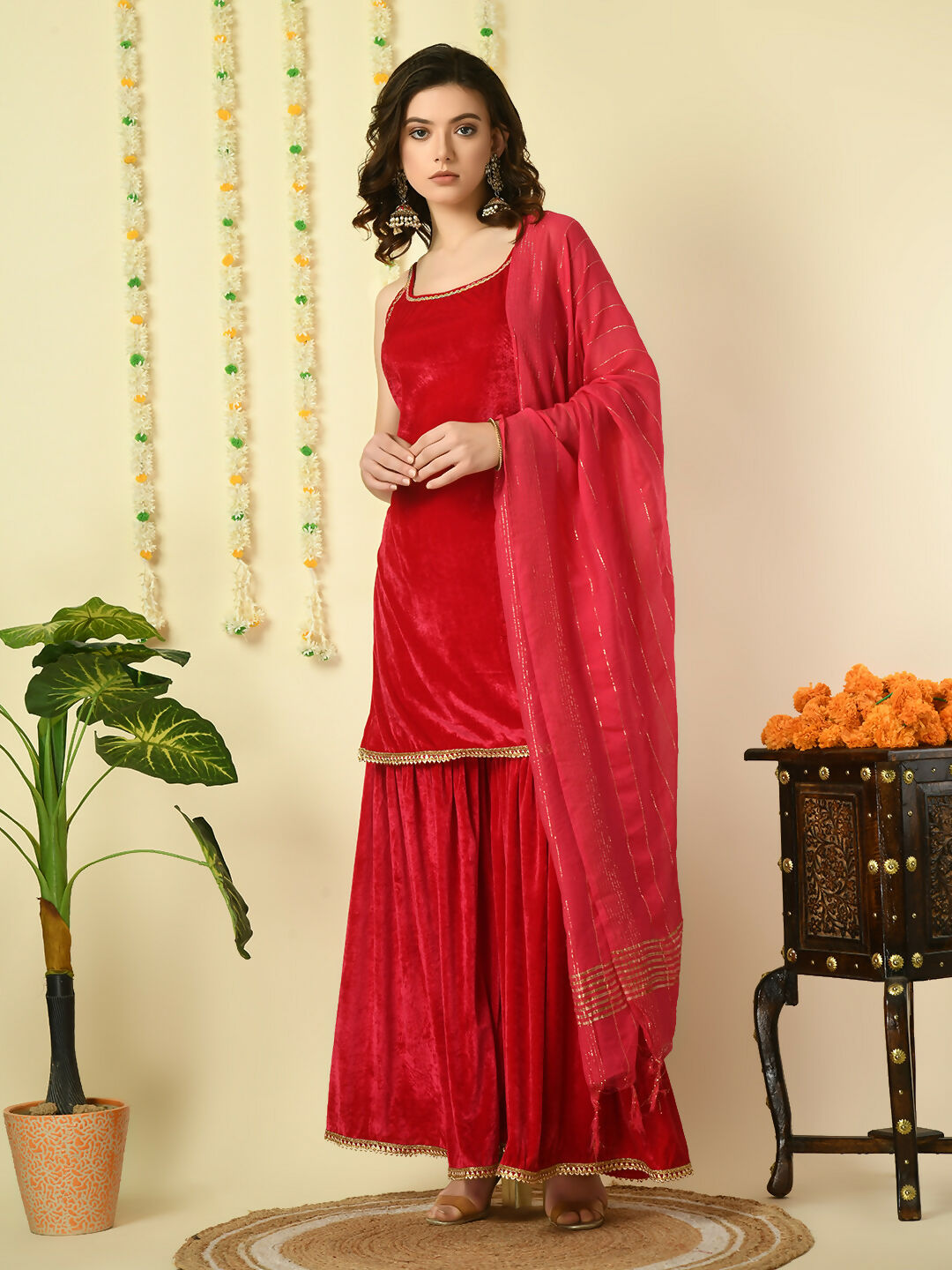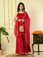 Myshka Women's Pink Velvet Kurti & Sharara With Dupatta Party Sets Color: Pink Top Type: Kurti Bottom Type: Sharara Dupatta: yes Dupatta ...