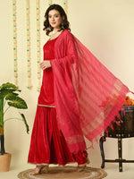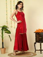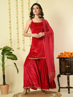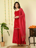Myshka Women's Pink Velvet Kurti & Sharara With Dupatta Party Sets