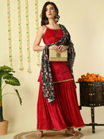 Myshka Women's Pink Velvet Kurti & Sharara With Dupatta Party Sets